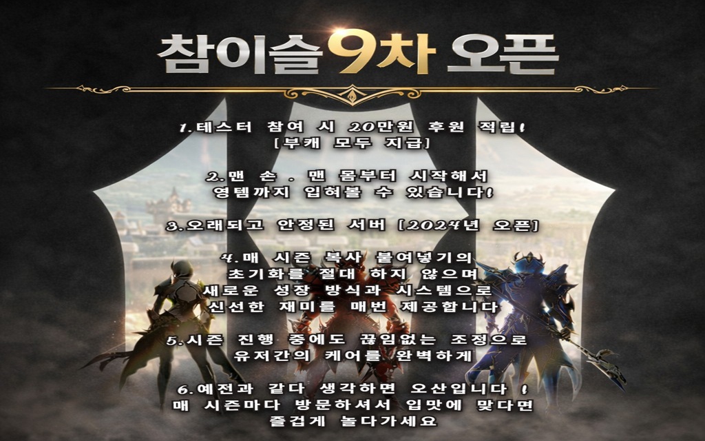 | 공지 | ❤️참이슬 9차 테스터 홍보 문구❤️ | GM이슬 | 2025.12.22 | 651 |